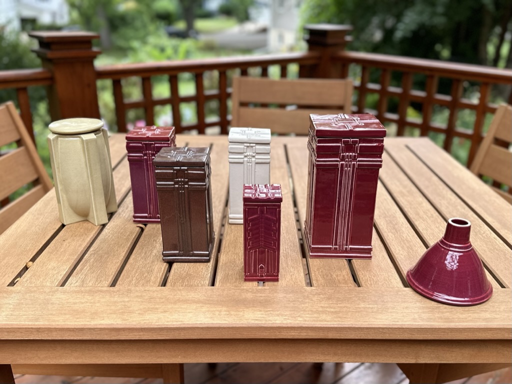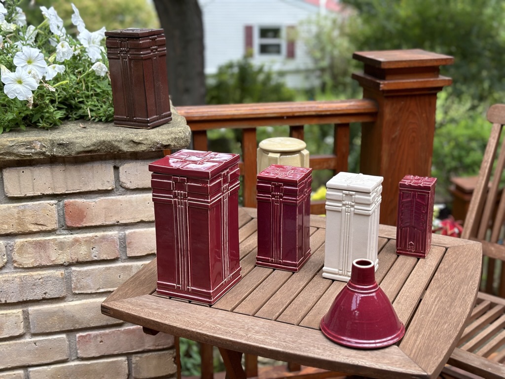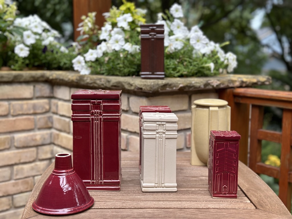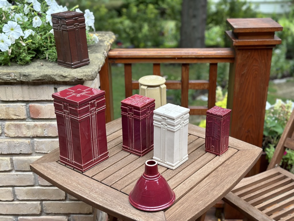 Prairie design is found in expensive 100-year-old houses, but not in small sized common objects, despite its obvious appeal. It is an American design vs non-American designs; it stands alone, unique and beautiful in my everyday pieces. We can’t all have a Prairie house (I suppose we could, but it just isn’t going to happen), but we can have pleasure seeing Prairie in the artful repose of our choosing.